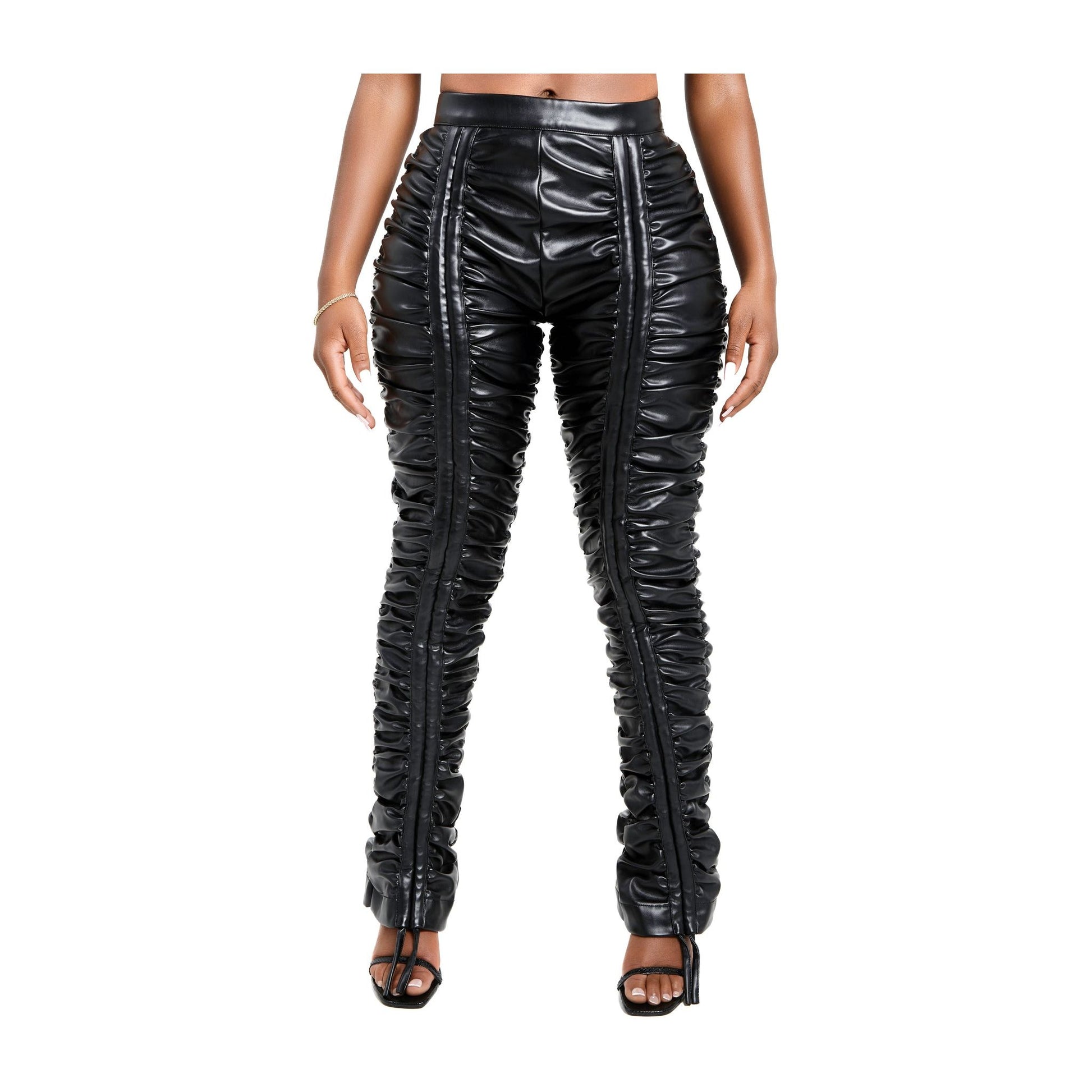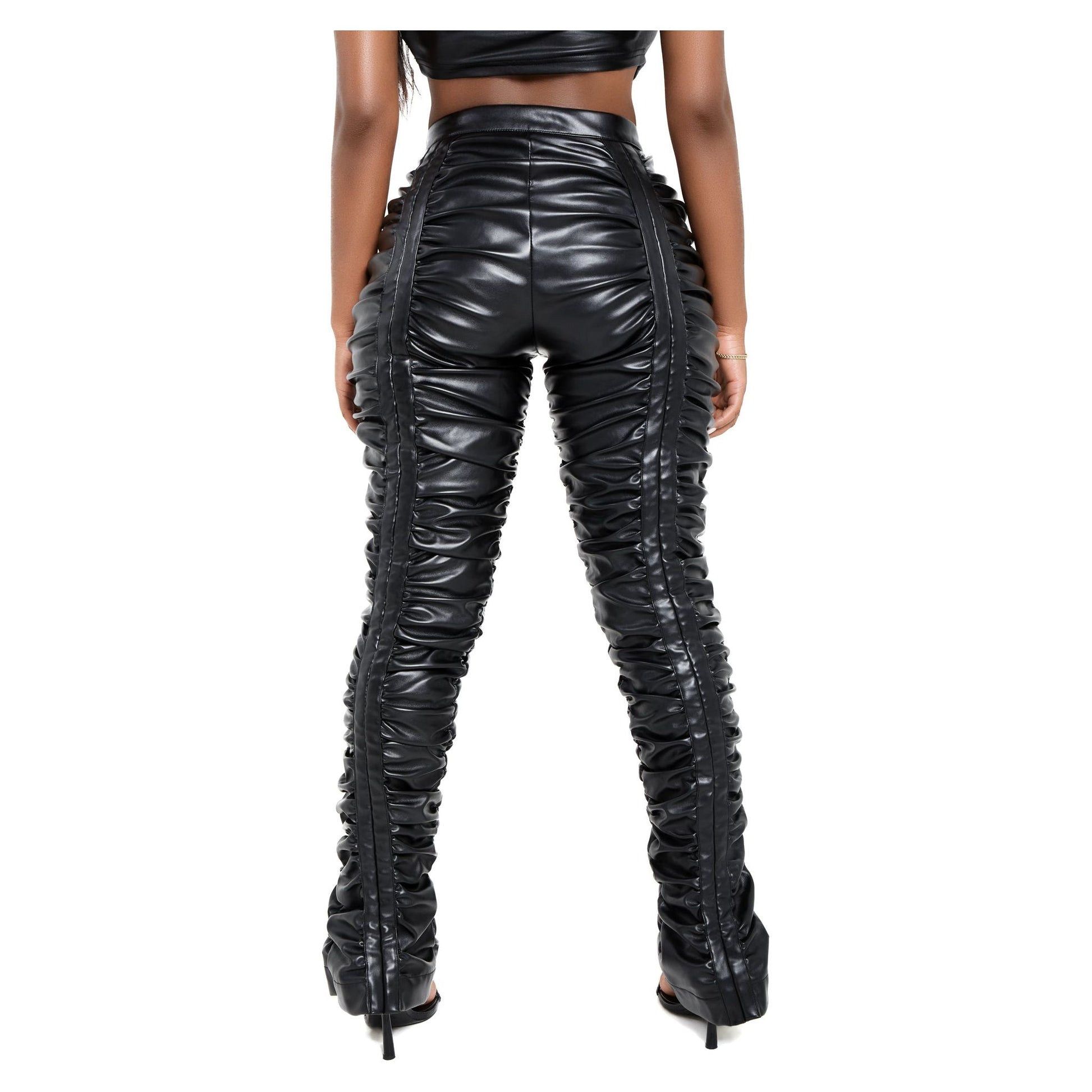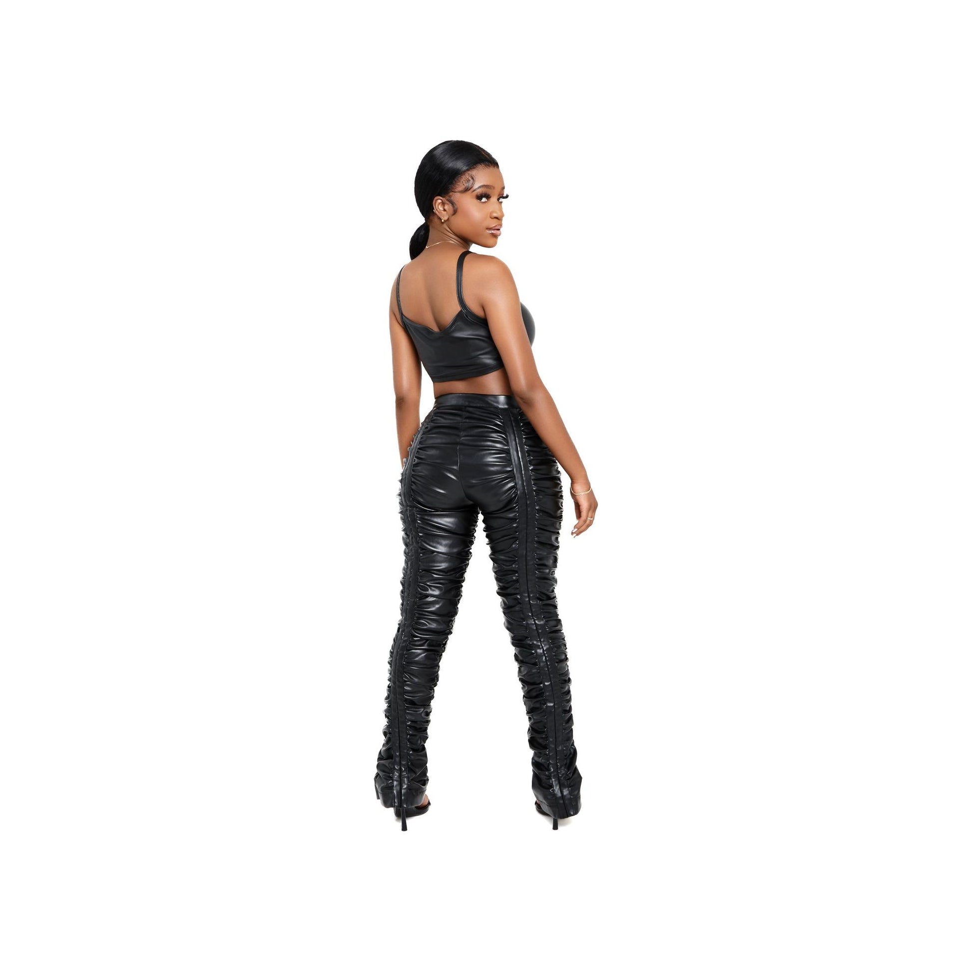 Elevate your style with our Rielle trousers, a perfect choice for a night out with the girls. Made with handmade ruches and insulated leather, these trousers not only enhance your figure but also provide comfort during the autumn-winter months. Add some edge to your wardrobe with this must-have piece.